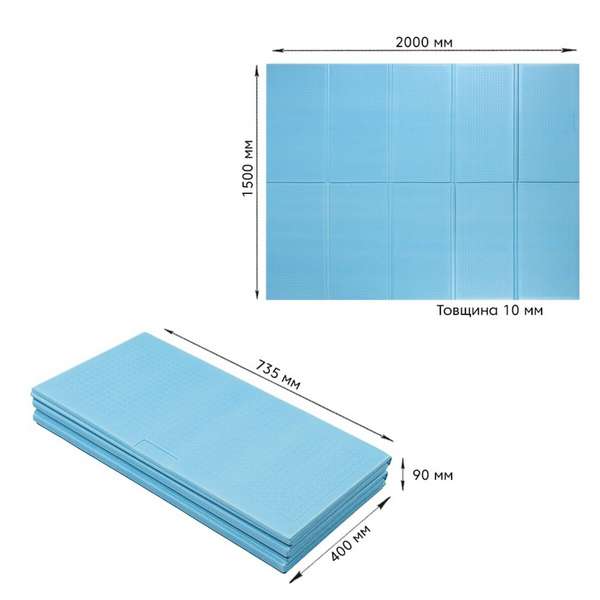 Килимок складний однотонний 1,5х2 м товщина 10мм Блакитний (297) купити за ціною 865 грн.